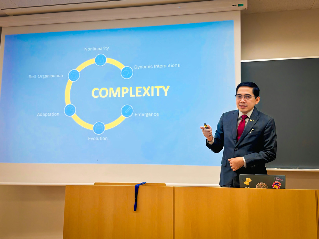 Hari ke-3 (1 Oktober), aku berpresentasi dalam Program Khusus 15 dengan judul “Synergy for Sustainable Impact.” Sesi ini dimoderatori oleh Allya Paramitha, dengan para panelis Hidenobu Harasaki, Husain Mahdi, Agnes Irwanti, Bernard Lim, Chie Sato, Saurabh Soni, dan aku sendiri. Diskusi membahas mekanisme kolaboratif antara teknologi, kebijakan, dan inovasi sosial untuk mempercepat hasil kemanusiaan yang berkelanjutan. Aku nyaris selalu memulai presentasi tentang sinergi, ekosistem, dan kolaborasi industri dengan menempatkannya dalam framework teori kompleksitas, yang menunjukkan bagaimana sinergi dapat menghasilkan nilai emergence secara non-linear dalam ekosistem kompleksitas. Fenomena emergensi inilah yang menjadi kunci transformasi menuju pencapaian SDG, khususnya dalam memperkuat inklusivitas, ketahanan, dan keadilan.